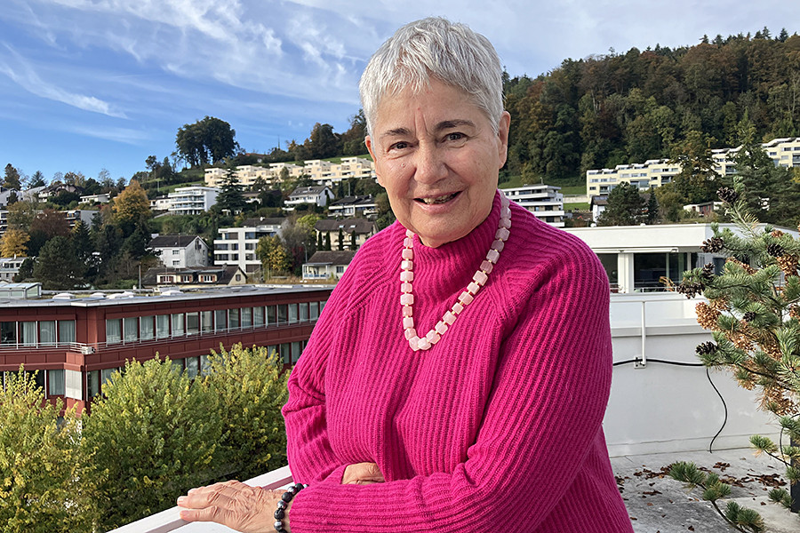 Auf dem Balkon ihrer Wohnung im Würzenbach freut sich Lyss Oeschger-Rickenbach auf das Konzert des Aphasiechores Zentralschweiz in der nahen Johanneskirche.